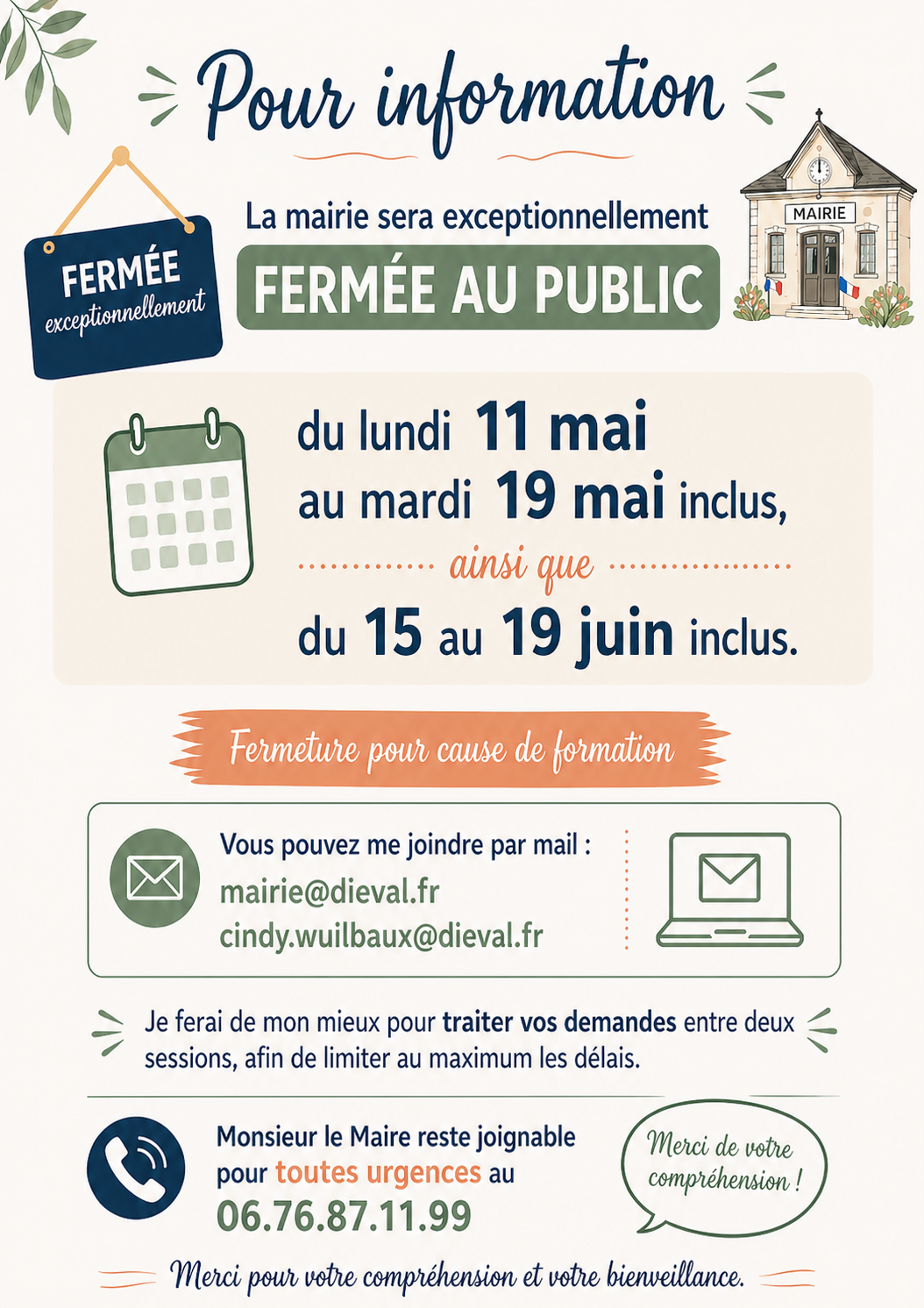 🏫 Une commune dynamique avec nos propres écoles maternelle et primaire !TOUS les parents dont les enfants sont scolarisés à Diéval et/ou participeront au centre de loisirs devront OBLIGATOIREMENT créer un compte MY PERISCHOOL,