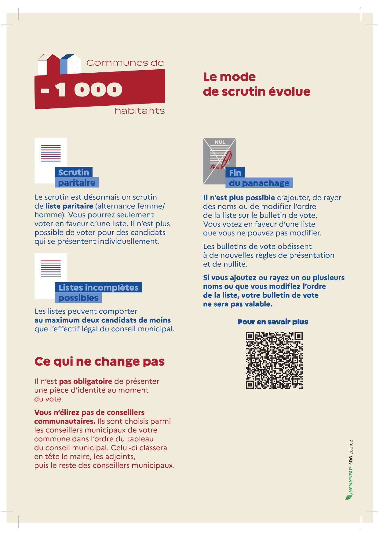 🚮 Déchets ménagers : ramassage tous les mardis♻️ Poubelles jaunes (tri sélectif) : ramassage les mardis des semaines impairesMerci de sortir vos bacs la veille au soir afin de faciliter la collecte.🙏 Merci de votre participation au maintien de la propreté de notre commune.Nouveau mode de scrutin pour les élections municipales pour les communes de moins de 1000 habitants